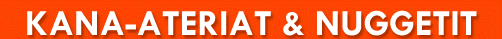 Nugget-aterioihin kuuluu nuggetit, perunat, pitaleipä, salaatti ja kastike.